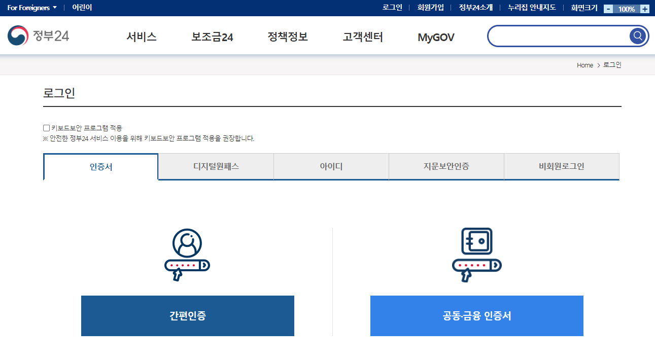 아래 링크를 눌러 정부24 홈페이지에 접속합니다