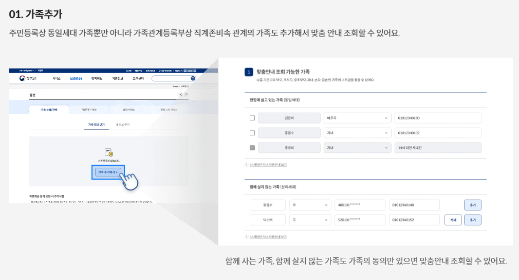보조금24는 정부에서 서비스, 민원, 정책 등을 통합으로 제공하는 대한민국 정부 포털로 우리 가족이 받을 수 있는 보조금을 한 번에 확인하고 신청할 수 있는 맞춤형 서비스입니다. 이번 개편에 따라 교육, 직장 등으로 다른 지역에서 사는 가족이라도 본인 동의만 있으면 가족 중 한 사람이 혜택을 확일할 수 있는 서비스도 시행됩니다.